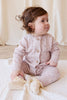 The Emily Onepiece in Dusty Violet Marle is a beautifully knitted essential for your baby’s wardrobe. Featuring a soft textured pattern and buttons down the front, this long-sleeved, full-length onepiece is designed to keep your little one warm and comfortable. Ribbed cuffs at the wrists, ankles, and neckline ensure a snug fit without restricting movement.