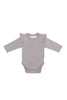 A beautifully simple and versatile bodysuit for your little one. The Ana Bodysuit in Moon features delicate frill detailing on the shoulders and a soft, lightweight feel—perfect for layering or wearing on its own throughout the year.