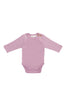 Discover the beauty of simplicity with our Organic Cotton Marlo Long Sleeve Bodysuit – Lily, a timeless piece in a muted lilac hue. Designed for everyday comfort, this bodysuit is perfect for layering under cosy knits or wearing on its own for a soft, minimal look.