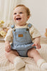 The Pax Playsuit – Holiday Stripe is a timeless piece designed for comfort and style. Featuring soft vertical stripes in denim and cloud tones, this playsuit includes adjustable suspender-style straps with metal buckles, an elasticated waist and leg openings, and a sweet chest patch detail for added charm.